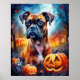 Get your furry friend ready for a howling good time with this adorable dog-inspired Halloween design! Featuring a spooky dog with pumpkins, this design is perfect for pet parents who want to include their four-legged family