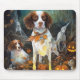 Halloween Brittany Spaniel With Pumpkins Scary Mouse Pad