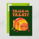 This cute cartoon halloween bug illustration features an orange and yellow striped candy corn bug with the words "Trick or Treat?" in chunky orange text! This sweet spooky spider design is the perfect halloween gift to buy for kids, insect lovers and anyone who loves adorable original halloween art!