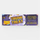 Halloween Trunk or Treat banner features a kid-friendly cute pumpkin wearing a purple hat filled with sparkly stars, white ghost, candies, bats, a colorful banner, a glowing iridescent moon, clouds and sparkly stars.
