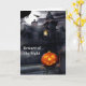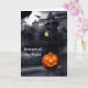 Greeting card is shown with a festive Halloween scary haunted house scene print.
