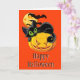 Greeting card shown with a festive Halloween cat on a pumpkin print.