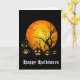 Greeting card is shown with a spooky Halloween scene print.