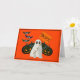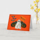 Greeting card is shown with a festive Halloween scary pumpkins and ghost print.