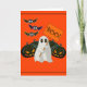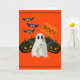 Greeting card is shown with a festive Halloween scary pumpkins and ghost print.