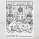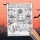 Halloween themed activity pages for kids, teens or adults. A black cat sitting on a front porch with a pumpkin. Nice thick paper to make coloring easy.