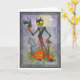 Here is the king of Autumnal Mischief, Halloween Cat in a spectacular orange and black tuxedo! This card is blank for your personalized Halloween greeting! Originally painted with watercolors and Prismacolors on bristol board. Check out the detain in the border!