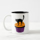 Gothic design of a cupcake with a black Halloween cat. Stylish gothic halloween design with a black and orange theme.