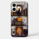 Cozy and spooky, this phone case features a Halloween bookshelf with a black cat, glowing pumpkin, and playful ghosts in a stained-glass–inspired design.