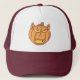 A fun vintage style retro inspired Halloween cat Jack-o-lantern carved pumpkin themed cute character kitty fun cartoon orange black kitten trick or treater kids unique October spooky season retro aesthetic cartoon character fun design trucker hat. Get a funny cartoon Halloween cap today.