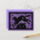HALLOWEEN CAT JUMPING OVER PUMPKIN, BLACK & PURPLE HOLIDAY POSTCARD