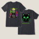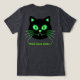 Step into the spooky side of feline fashion with this Bella+Canvas Tri-Blend T-Shirt featuring bold double-sided graphics. On the front, the hilarious and creepy “Zombie Whiskers” design showcases a green-eyed zombie cat draped in a dark cloak, holding a fish skeleton under the glowing full moon. Splashes of neon green, purple, and red give this artwork a vibrant Halloween vibe, complete with bats and eerie details. On the back, a glowing black cat face with neon green eyes, fangs, and whiskers stares out with the phrase “Nine Lives Later…” in bold lettering for the ultimate spooky punchline.