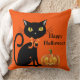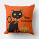 Halloween Cat Pillow shown in orange on the front and black on the back.