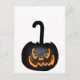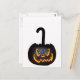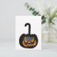 Black cat's green eyes peer out from a black and orange pumpkin with his tail sticking out the top Halloween photo postcard