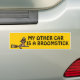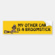 "My Other Car Is A Broomstick" humorous bumper sticker showing a cat with a witches hat riding a broom stick!
