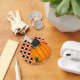 Colorful Halloween t-shirts, mugs, cards, stickers, trick or treat bags, magnets, and other Halloween clothing and gifts with a cute black cat in pumpkin and colorful orange and black dots design!