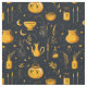 A witch themed Cauldron and potions patterned fabric. Design features potions and cauldrons in orange on a black background. A fun design for Halloween themed home decor, crafting and sewing or quilting projects.