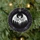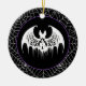Halloween party ceramic ornament is shown with a haunted bat print.
