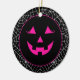Halloween party ceramic ornament is shown with a pumpkin face.