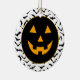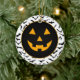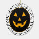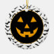 Halloween party ceramic ornament is shown with a pumpkin face.