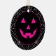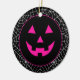 Halloween party ceramic ornament is shown with a pumpkin face.