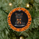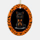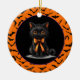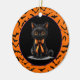 Halloween party ceramic ornament is shown with a cute black cat print.
