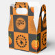 Halloween chessboard design in orange and black with jack-o-lantern, witch, full moon with bats and a spider net with a creepy spider.