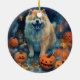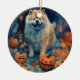 Halloween Chow Chow With Pumpkins Scary Ceramic Ornament
