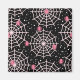 Magnet with a cute seamless pattern with white cobwebs and pink spiders.