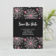 Save the date card wwith a cute seamless pattern with white cobwebs and pink spiders.