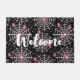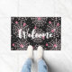 Welcome door mat with a cute seamless pattern with white cobwebs and pink spiders.