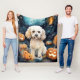 Halloween Cockapoo With Pumpkins Scary Fleece Blanket