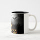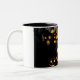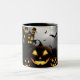 Coffee mug shown in a Halloween haunted pumpkins print.
