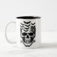 Coffee mug is shown in a Halloween skull print.