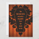 Halloween party invitations in a Gothic style with dark orange stripes under a black damask motif and a black coffin. The backside is all black. Personalize both sides with your party information.