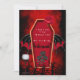 You will love these coffin with bat wings, spooky trees, and a goblet on a red and black smoky background. Matching invitations are available.