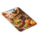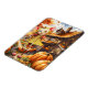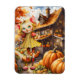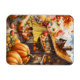 A whimsical creature with large ears and bright eyes stands joyfully on a cobblestone path lined with vibrant pumpkins. The scene is set in a charming village with quaint wooden houses under a bright, blue sky. Digital Art