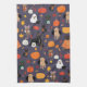 Halloween Costume Dogs Kitchen Hand Towel. Illustrated dogs in Halloween costumes including a ghost, witch, Harry Potter, Ty Beanie Baby, Peter Pan, a bat and a mouse. Design also features pumpkins and candy corn. Perfect addition to any kitchen for the Halloween season.