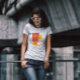 I love wearing a reprint of my colored pencil drawing of Annie the cat looking over the hillside. My illustration is based on a picture I took of Annie the manx cat. The printing turned out lovely, and the shirt is soft and thick. The American Apparel shirt run on the smaller size, so I always order a large or extra large.
