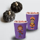 Designed to coordinate with our Halloween Costume Party for Kids Collection, this cute paper cup features an adorable child dressed up in a traditional pumpkin costume on one side and a werewolf on the opposite side. The background is a solid purple. To get the matching invitation or plates, click on the collections tab.