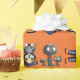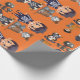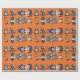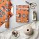 This is an orange-dominant Halloween themed wrapping paper with some cute Halloween illustrations that consists of dogs and children.