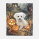 Halloween Coton De Tulear With Pumpkins Scary Fleece Blanket