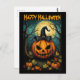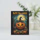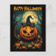 A colorful creepy pumpkin postcard. Happy Halloween.