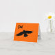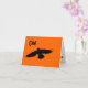 It's not Poe's raven, but this silhouette of a crow in flight is spooky enough for All Hallow's Eve. The black crow flies across an orange background, wings outstretched . The crow's comment, "Caw!" is written in black lettering at the upper left of the image. Inside the card on a white background black letters say, "This old crow says Happy Halloween." A smaller image of the same crow is found in the lower right corner. Copyright Gail Storrs 2009.