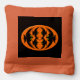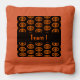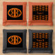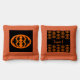 This awesome set of cornhole bags features an orange oval with six crows in it. Each crow has yellow eyes with black pupils and outstretched wings. The crows are flying towards each other forming an oval shape. The background is black. There is custom text on the back of the bags so you can include team names.