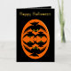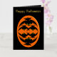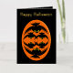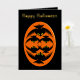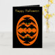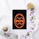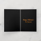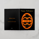 This awesome Foil Halloween card features an orange oval with six crows in it. Each crow has yellow eyes with black pupils and outstretched wings. The crows are flying towards each other forming an oval shape. The background is black. There is custom text inside so you can personalize this card. The custom text on the front is in beautiful gold foil.