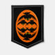 This awesome Pennant features an orange oval with six crows in it. Each crow has yellow eyes with black pupils and outstretched wings. The crows are flying towards each other forming an oval shape. The background is black.