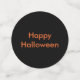 This awesome table confetti features an orange oval with six crows in it. Each crow has yellow eyes with black pupils and outstretched wings. The crows are flying towards each other forming an oval shape. The background is black.