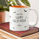 Celebrate Halloween season with this personalized mug as a gift to your family and friends. This two-tone coffee mug features bat graphic, customized photo, name and phrase "Happy Halloween".