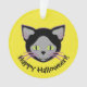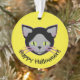Easily personalize the text on this acrylic ornament featuring a cute black Halloween cat face graphic.